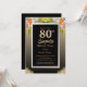 Convite de festas de janto de aniversário de 80 surpresa floral preto e ouro.