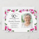Um elegante quadro de pansias de aquarela rodeia os detalhes e a foto da sua festa de janto de aniversário de 90. A brilhante e colorida cor magenta, rosa e branca floral é perfeita para uma celebração de aniversário de primavera ou verão. Todo o texto é editável para que você possa criar a vibração certa. A parte de trás do convite é uma magenta vibrante. Este convite faz parte da coleção Pansy Rosa. Você tem modelos de criar um pacote de convite exclusivo e de coordenar suprimentos da parte.