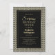 Um convite de festas de aniversário surpresa preto, branco e dourado.