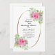 Um convite de festas de janto surpreendente de ouro floral cor-de-rosa.