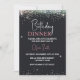 Nosso elegante "Convite para Janto de Aniversário de Brilhante Negro" apresenta um fundo preto com uma borda superior de brilho iridescente, o brilho está caindo pelos lados Se você precisar de outro produto ou personalização correspondente, por favor, entre em contato comigo.
