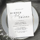 Convites simples e elegantes de janto de aniversário que podem ser mudados para qualquer idade. O texto diz: "junte-se a nós para jantar e beber" com um roteiro de caligrafia. Fonte preta sobre fundo branco.