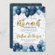 Um convite de festas jante de aposentadoria maravilhoso. Este glamouroso design azul e dourado apresenta brilho e balões. Fácil de personalizar com o seu próprio janto de aposentadoria ou detalhes do jantar.