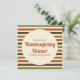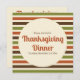 Frente: as faixas verdes, marrons e brancas antigas acompanham o texto de exibição que você pode editar. (Mostrado: Junte-se a nós para o Janta de Ação de Graças, quinta-feira, 23 de novembro, 20xx). Voltar: Você pode editar o modelo de convite para janta de Ação de Graças para mostrar a data, hora, local e detalhes de RSVP para a sua celebração de Ação de Graças.