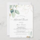 Este janto de verde-areia e de folha de ouro é perfeito para um ensaio de casamento moderno. O elegante design botânico apresenta uma aquarela clara e arejada, eucalipto, acentuado com folhas de brilho de ouro branco.