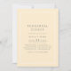 Calma e subestimada, este convite de janta de ensaio da Avery Suite emparelha um fundo amarelo de manteiga com delicadas linhas duplas e letras nítidas sans-serif. Ele define um tom limpo e eterno — perfeito para casais que adoram a simplicidade moderna.