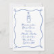 Whimsical Mão Desenhou o Janto de ensaio azul francês Convite, com uma garrafa de champanhe desenhada à mão com um arco e letra de escrita manual.