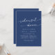 Este convite de janto de ensaio de casamento azul real e boho é perfeito para uma noite minimalista antes do ensaio de casamento. O ousado design boêmico azul escuro e moderno apresenta uma caligrafia rústica simples com um estilo único, mas clássico.