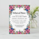 Bonito convite para janto floral colorido com flores cor-de-rosa, coral, pincel e azul.