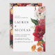Convide familiares e amigos para o seu casamento com este convite de janto de ensaio. Apresenta uma fazenda floral de amarilis, rosas, crisântemos e ranúnculo com um padrão floral correspondente. Personalize este convite de janto de ensaio botânico adicionando os detalhes do seu evento. Este convite de janto de ensaio personalizado é perfeito para o outono e casamentos no inverno.