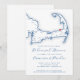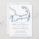 Este convite de janto de ensaio casual apresenta um tema moderno, elegante e marinho azul do mapa do Cabo Cod, perfeito para um casamento em Brewster, MÃES. Ponha o tom para uma memorável celebração pré-casamento com este design chic. Ideal para locais como Ocean Edge Resort, The Brewster Inn e The Captain Golf Course. O mapa sofisticado adiciona um toque pessoal ao seu fim de semana de casamento em Cape Cod. Trabalho de arte por Designs de Mapa Costeiro.