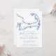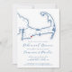 Este convite de janto de ensaio casual apresenta um tema moderno, elegante e marinho azul do mapa do Cabo Cod, perfeito para um casamento em Mashpee, MÃES. Prepare o palco para uma noite memorável com este design chic que complementa sua celebração. Ideal para locais como New Seabury, Popponesset Inn e Willow Bend Country Club. O mapa sofisticado adiciona um toque pessoal ao seu fim de semana de casamento em Cape Cod. Trabalho de arte por Designs de Mapa Costeiro.