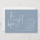 Na Noite Anterior. Design moderno romântico minimalista temático, cartão de convite para janto de ensaio de casamento (em azul empoeirado, tema de orientação paisagística). Planejar uma celebração do Janto de ensaio do casamento com a futura noiva e futura noiva, antes do seu grande dia? Convide os convidados com este Cartão de Convite para Janto de Ensaio de Casamento perfeito. Edite-o facilmente com seus detalhes de convite de janto de ensaio. O cartão de convite disponível em / cópias impressas e em arquivos digitais descarregáveis.