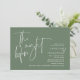 Na Noite Anterior. Design moderno romântico minimalista temático, cartão de convite para janto de ensaio de casamento (em verde de sábio, tema de orientação paisagística). Planejar uma celebração do Janto de ensaio do casamento com a futura noiva e futura noiva, antes do seu grande dia? Convide os convidados com este Cartão de Convite para Janto de Ensaio de Casamento perfeito. Edite-o facilmente com seus detalhes de convite de janto de ensaio. O cartão de convite disponível em / cópias impressas e em arquivos digitais descarregáveis.