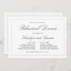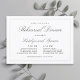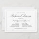 Um convite de janto para ensaio de casamento com gosto, com simplicidade clássica, este design apresenta uma fina borda prateada rodeada de seu texto em cinzas escuras em um fundo branco. Você pode adicionar, remover ou ajustar o posicionamento do texto de acordo com as suas necessidades. O popular fundo branco soma-se à simplicidade limpa deste design.