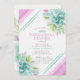 A aquarela solta suculenta os convites de janto de ensaio de noivas. Bonito convite para design em verdes azuis, matizes verdes, cor-de-rosa e roxas. Personalize com seus próprios detalhes de janto de ensaio. Outros itens correspondentes disponíveis na coleção de arte suculenta. Arte com aquarela original de Sarah Trett para www.mylittleedenweddings.com no zazzle.