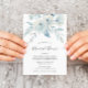 lindas flores azuis empoeiradas com roteiro elegante. Você pode personalizar o texto, o tamanho do texto, as cores e a fonte neste convite de casamento.