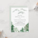 Convite para janto de ensaio sobre temas florestais. Apresenta árvores de aquarelas e montanhas com tripes padrão e tipografia simples. Os textos são perfeitamente editáveis para todos os efeitos. Personalize adicionando seus próprios detalhes. Este convite à floresta aquarela é perfeito para jantadas de ensaio de outono e inverno.