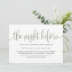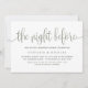 Defina o tom para uma noite memorável com nosso Convite de Janto de ensaio personalizável, com a elegante frase "A Noite Antes" em um roteiro caprichoso. Este elegante convite de janto de ensaio foi feito para capturar o entusiasmo da noite antes do grande dia. Quer você esteja hospedando um pequeno encontro íntimo ou uma celebração maior, este convite para o ensaio de casamento é a forma perfeita de convidar seus amigos e família mais próximos a compartilhar a magia. Personalize o convite com os detalhes do evento, incluindo a data, hora e local.