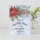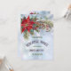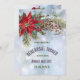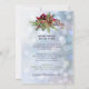 Belo casamento no inverno botânico Convite para ensaio com Poinsettia vermelha, bagas e spray de pinheiro. O fundo tem um efeito branco e azul suave de um bokeh com poeira leve de flocos de neve. A coleção de casamento Elegante de Natal tem ideias e cartões de presente compatíveis.Personalize o texto de na moda na frente e atrás com suas informações.