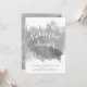 O convite para ensaio de cinzas de casamento no inverno de abstrato moderno, com janta de cor d'água, apresenta um esplash de tinta aquosa pintada manualmente com textura em tons de cinza, árvores em branco com neve, flocos de neve e texto em branco e cinza. Este convite de casamento elegante e na moda é um modelo perfeito para o seu casamento no inverno.