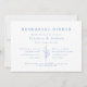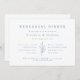 O convite de janto de ensaio minimalista apresenta folhas botânicas ilustradas de mão rústica e fontes clássicas modernas em azul e branco, simples e elegante, excelente para o casamento rústico de verão, casamento botânico primavera. Ver todas as peças correspondentes na coleção