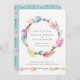 Pena tribal boêmica boêmica e miçangas de aquarela de wreath de janto de ensaio de casamento. Bonito penas para liberdade espiritual e miçangas para amizade, união de casamento convidam design. Personalize com os seus próprios detalhes de casamento, a cor de fundo no verso também pode ser alterada para se adequar ao seu tema de cor ou à sua própria cor preferida, atualmente, aqua teal. Arte com aquarela original de Sarah Trett para www.mylittleedenweddings.com no zazzle.