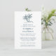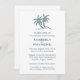 Um convite elegante, mas simples, de janto de ensaio de casamento, com duas palmeiras azuis e todas as informações necessárias para os seus planos de janto. Este convite seria excelente para temas de janto de casamento tropicais, litorâneos, oceanos, praia ou costeira.