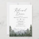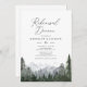 Convide amigos e familiares para o seu janto de ensaio com este convite elegante, com montanhas de aquarelas e pinheiros.