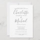 Apresentando nomes de estilo de assinatura, esta cinza elegante e este convite de janto de ensaio de casamento branco pode ser personalizado com as suas informações em caracteres de cinza. Projetado por Thisnotme©
