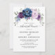 Elegante azul púrpura lavanda lilac floral tema reouvido janto Convite com buquê elegante de azul poeirento, Marinho, púrpura, cor lilás flores rosa e folhas verdes de eucalipto sábio. Entre em contato comigo para obter ajuda sobre a personalização ou se você precisar de outro produto com este design.