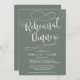 O vamos comemora nossa noite de ensaio de casal favorita antes do grande dia com este clássico e elegante turbilhão florescendo o Janto Script de Ensaio em branco no eucalipto verde.