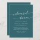 Este convite de janto de ensaio de casamento azul-teal feito em boho é perfeito para uma noite minimalista antes do ensaio de casamento. A ousada joia da turquesa azul-escura do moderno design da boêmia apresenta uma caligrafia rústica simples com um estilo único, mas clássico.