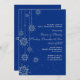 Flocos de neve de cristal, convite de janto de ensaio de casamento azul que mostra flocos de neve de cristal pendurados e neve em fundo azul real médio. Uma design moderna e contemporânea para o seu casamento de dezembro de inverno ou de Natal. Este modelo é parte de um casamento, é totalmente personalizável e pode ser personalizado. Note que não existem cristais reais, joias ou fitas, mas são imagens impressas em formato plano.