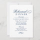 O convite para janto de ensaio de casamento azul de marinho formal apresenta uma bela tipografia que combina um tradicional roteiro de caligrafia florescente com a letra clássica de blocos. Inclui um sotaque de design de rolagem decorativo. O texto personalizado pode ser totalmente personalizado para o seu evento especial. Compre nossa Coleção de Casamentos Azuis do Marinho Elegante Clássico para coordenar designs.