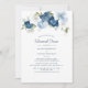 Personalize este cartão de convite para casamento de janto de ensaio clicando no botão "Personalizar" acima. A carta apresenta um moderno e elegante chic com flores azuis empoeiradas, de cor branca, azul claro e verde-oliva. DICA: Cartões de suíte de casamento iguais, como RSVP, programas de casamento, banners, tapeçarias, etiquetas de presentes, placas e outras pegadas de casamento e guloseimas estão disponíveis na coleção abaixo com esta design.