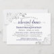 Este belo convite para jantas de ensaio é simples e elegante. Ele apresenta texto azul marinho e cinza sobre um fundo branco com folhas de alumínio ou filigrana prateada nos cantos. Ele tem informações sobre o ensaio de casamento, assim como sobre o janto comemorativo que se segue. Perfeito por manter a noiva informada sobre todas as festividades pré-casamento.