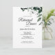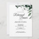 Este convite de janto de ensaio Botânico Neutral fornece um simples e rústico paladar de planta para coordenar com qualquer tema tradicional de janto de ensaio de casamento. O mínimo verde, com sombras escuras e cinzas de elegantes folhas verdes de eucalipto e folhagem de plantas, ao lado da caligrafia casual clássica, abre uma natureza minimalista à celebração clássica e formal do casamento.