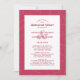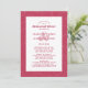 O convite de janto de ensaio de casamento vermelho magenta apresenta um padrão artístico de folhas botânicas num fundo magenta de tendência. A caligrafia e a escrita em negrito estão em magenta sobre um fundo branco e apresentam o casal e os sobrenomes posicionados de forma artística sobre uma maior e maior marca de coordenação. Um modelo de tendências complementa o design único. A parte traseira do cartão repete o padrão de folha. Para obter melhores resultados, substitua os detalhes de modelo com suas próprias informações deixando espaço entre parágrafos como no exemplo e use todas as letras maiúsculas quando especificado. Envie um e-mail para invitationsuites@gmail.com com perguntas ou use o link de mensagem para solicitações de cores personalizadas.