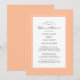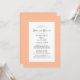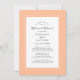 O convite para janto de ensaio de pêssego Elegante mostra uma bela fronteira chic em pêssego contemporâneo que inclui uma elegante fronteira branca. A caligrafia e a escrita são cinzas de carvão sobre fundo branco. Um modelo moderno para data e ano complementa o design único de caligrafia. A parte traseira da placa é cor de pêssego sólido. Para obter melhores resultados, substitua os detalhes de modelo com os seus próprios detalhes, deixando espaço entre os parágrafos como no exemplo e use todas as letras maiúsculas quando especificado. Envie um email para invitationsuites@gmail.com com perguntas ou solicitações personalizadas.