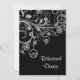 Modernos pântanos florais e aves negras Casamento branco ensaiado Convite Jante, com espirais brancas e linhas pontilhadas com folhas, flores e aves em anéis suspensos sobre fundo preto. Esta design bonita e moderna é parte modelo de um jogo de casamento e tem uma sensação retrógrada e é perfeita para um casamento no inverno.