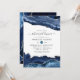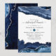 Marinho azul e falso brilho prateado agate caroço jantar convite com tipografia elegante de escrita manual personalizável para suas especificidades de evento.