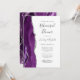A borda esquerda deste elegante convite para ensaio de casamento moderno apresenta uma cor-d-água roxa com borda de cinza prateada. O texto personalizável combina a escrita manual de cinzas de carvão, as fontes em copperplate e itálico em um fundo branco. O verso apresenta um design de agata prateado e roxo correspondente.