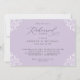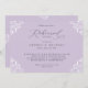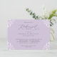 Estes convites elegantes de janto de ensaio de casamento roxo e lavanda são perfeitos para um tema de casamento clássico e sofisticado. A lavanda design/lilás/roxo claro apresenta um quadro de ornamentado vintage emparelhado com caligrafia elegante e texto clássico. O verso tem as iniciais do casal junto com um hospedado por linha para honrar os hosts do janto de ensaio (isso pode ser excluído se você não quiser).