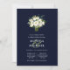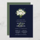 Elegante convite de janto botânico de coloração aquática com seu ensaio de cerimônia de casamento e detalhes de comemoração jantada com uma buquê de noiva de folhas verdes e flores brancas de cor aquática em um elegante fundo azul. Cartões se revertem a verde escuro coordenado Uma bela escolha para casamentos elegantes ou casamentos celebrados no campo. Este item é parte de uma coleção de casamento do White Bloom, por favor visite nossa loja. Para obter ajuda ou solicitação personalizada, entre em contato conosco através da loja ou escreva em citronelladesign@gmail.com