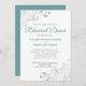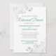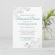 Este belo convite de Janto de ensaio apresenta um simples, mas elegante design de teal ou turquesa e texto de cinza sobre fundo branco com caramujos de folha fina prateada ou filigrana nos cantos. Bem-vindos membros de sua festa de casamento e convidados especiais para compartilhar em um Janto de ensaio com esses convites maravilhosos. Este convite é totalmente personalizável, para que você possa alterar o texto de acordo com sua situação e suas necessidades. Projetado para coordenar com nosso Teal & Cinza Elegant Wedding Suite