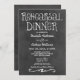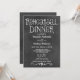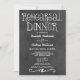 Encantador ensaio de casamentos em quadro caseiro janta convites para uma ocasião quic casual que apresentem fontes de estilo manuscrito, designs de rolagem e sotaques de ampersor que têm uma aparência de giz branco sobre um fundo que tem uma aparência texturizada de conselho preto rústico.