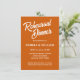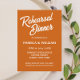 Simples estilo de janto de ensaio de casamento convites que apresentam letras brancas e estilizadas em um fundo cor de laranja queimado e em tendência. Edite seus convites substituindo nomes, data/hora, local e informações de contato por seus próprios nomes. Selecione o tamanho do convite e o estilo do papel.