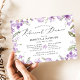 Este elegante Janto de Ensaio de Casamento Convite da nossa Lavanda Coleção Floral Pressionada apresenta flores de aquarela roxas com delicadas vinhas verdes, emparelhadas com uma letra moderna. Perfeito para qualquer estação. Para fazer alterações avançadas, selecione Personalizar -> Editar usando a ferramenta Design.