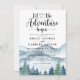 Elegantes montanhas rústicas de aquarela e janto de ensaio de casamento na cena da floresta, com árvores azuis e verdes e montanhas com um texto escrito: que comece a aventura. Para aqueles que amam uma floresta romântica sonhadora vibe pela sua cerimônia e celebração. Para ver a coleção de cheios de materiais correspondentes para este design, visite: https://www.zazzle.com/collections/rustic_forest_mountain_wedding-119965625201006103
